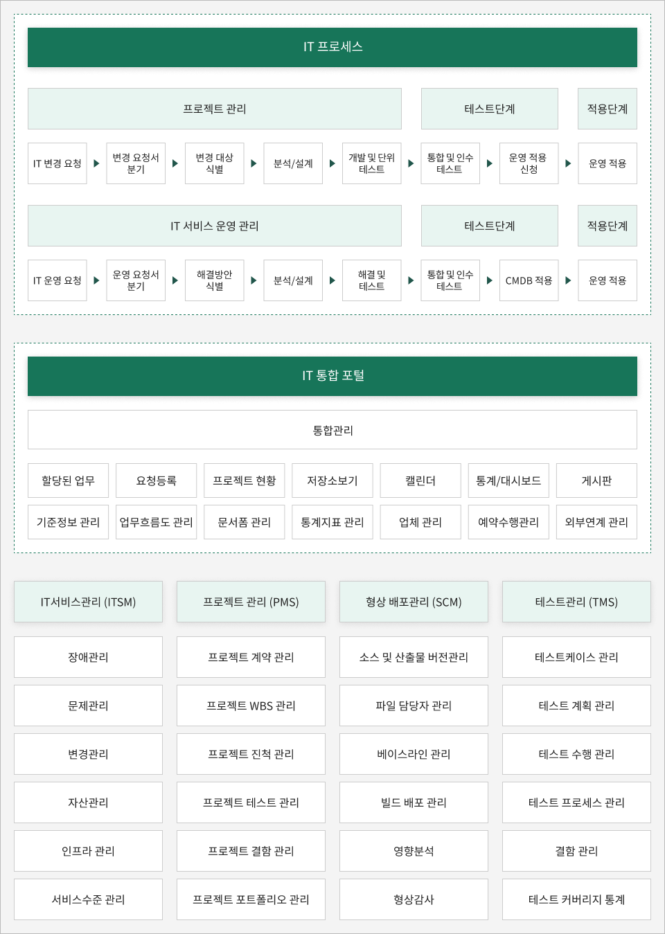 요청부터 개발·테스트·배포·운영까지,모든 IT 관리 프로세스를 통합 제공합니다.